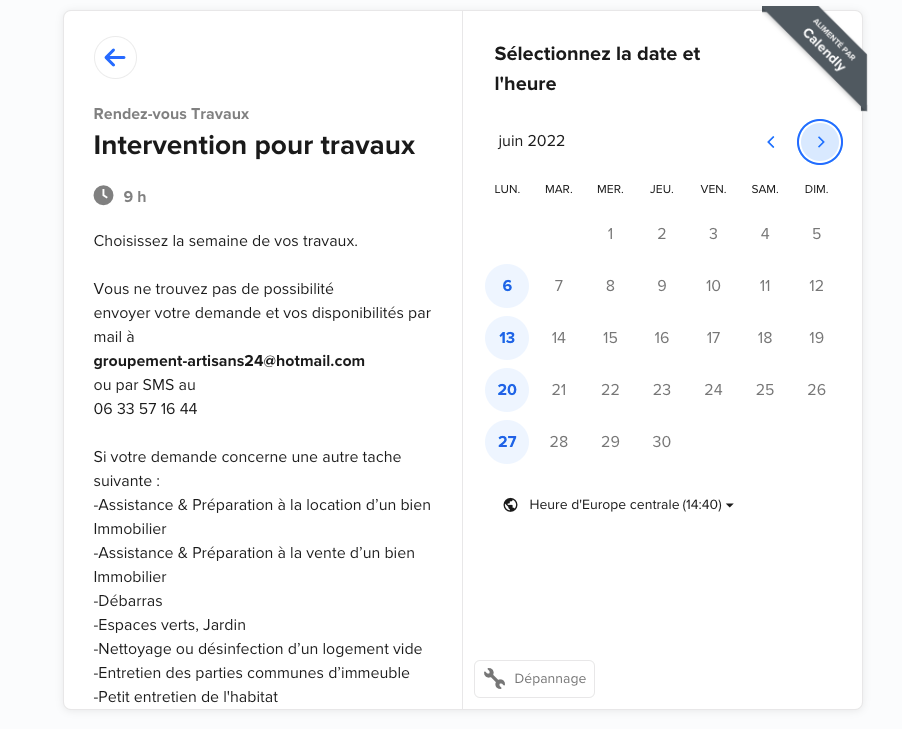 Elle m’a permis de prendre la responsabilité d’un projet de création d’un site web pour une entreprise du batiment avec la possibilité de prise de rdv par le biais d'un module externe "Calendly".